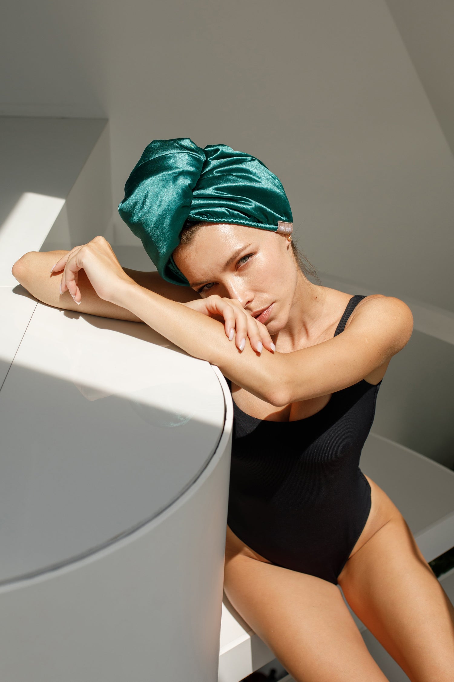 SMPL OBJECTS Shower cap is uniquely designed with our leakproof, nonslip silicone...